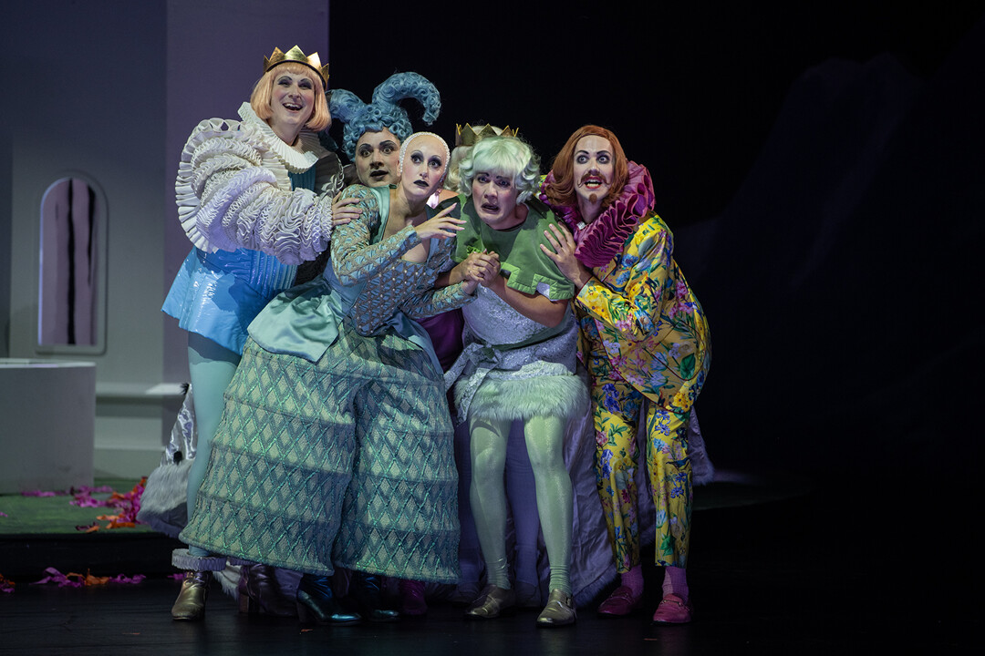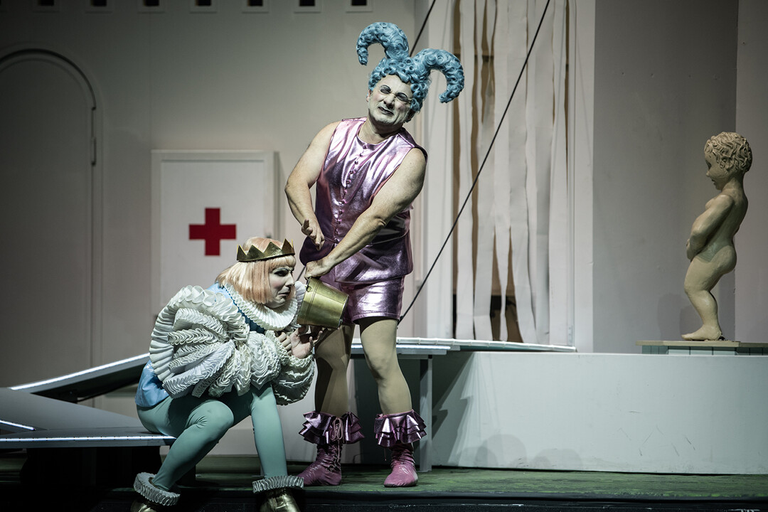 Lachen ist die beste Medizin: Also bemüht sich der Hofstaat darum, dem melancholischen Prinzen ein Lachen zu entlocken. Das geht gehörig schief, denn die böse Zauberin, über die der Königssohn schliesslich lacht, verdammt ihn zur titelgebenden Liebe zu drei Orangen.