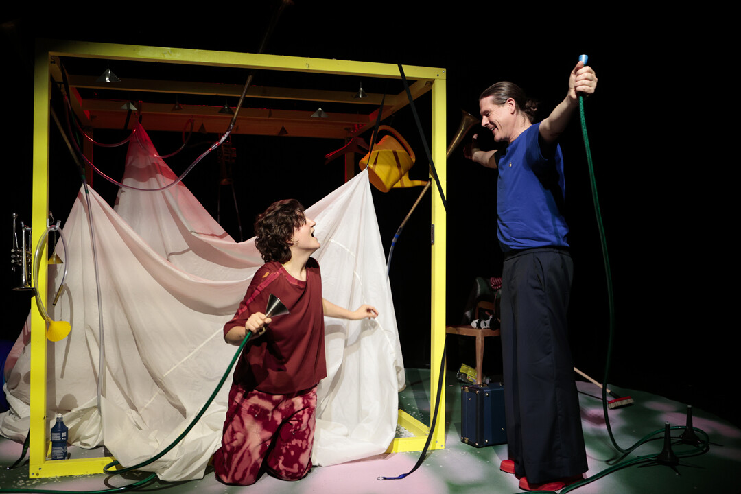 «Sei still! Mach vorwärts! Schlaf ein!» Puh! So viele Befehle von Erwachsenen, und immer genau das, was dem Kind gerade nicht passt. Als sich das Kind etwas wünschen darf, ist klar: «Ab jetzt bestimme ich!». Es folgt ein fantastisches Durcheinander. Manches geht schief, aber nicht nur! Das neue Kinderstück Andersrum! lässt mit wenig Worten und lustiger Musik, von Gesang über Trompete, Alphorn und Gartenschlauch, verrückte Träume wahrwerden.