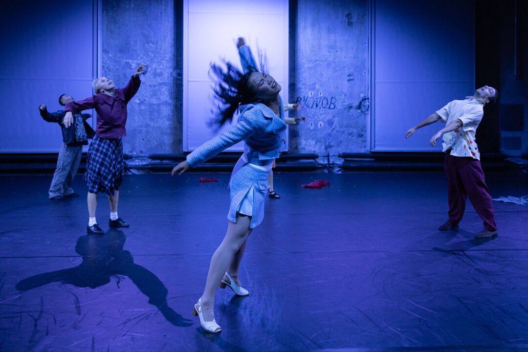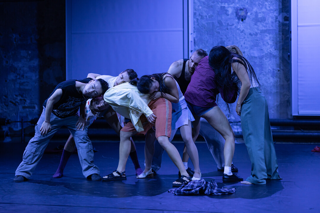 Das andere Stück, Time of my life, ist von Kiyan Khoshoie aus Genf und bringt den Tanz mit der Frage zusammen, wie unser Umfeld uns beeinflusst. Die Tänzer:innen erleben, wie es ist, zwischen Kontrolle und dem Versuch, diese loszulassen, zu schwanken. Sie fragen sich, was passiert, wenn man sich ganz auf den Moment einlässt.