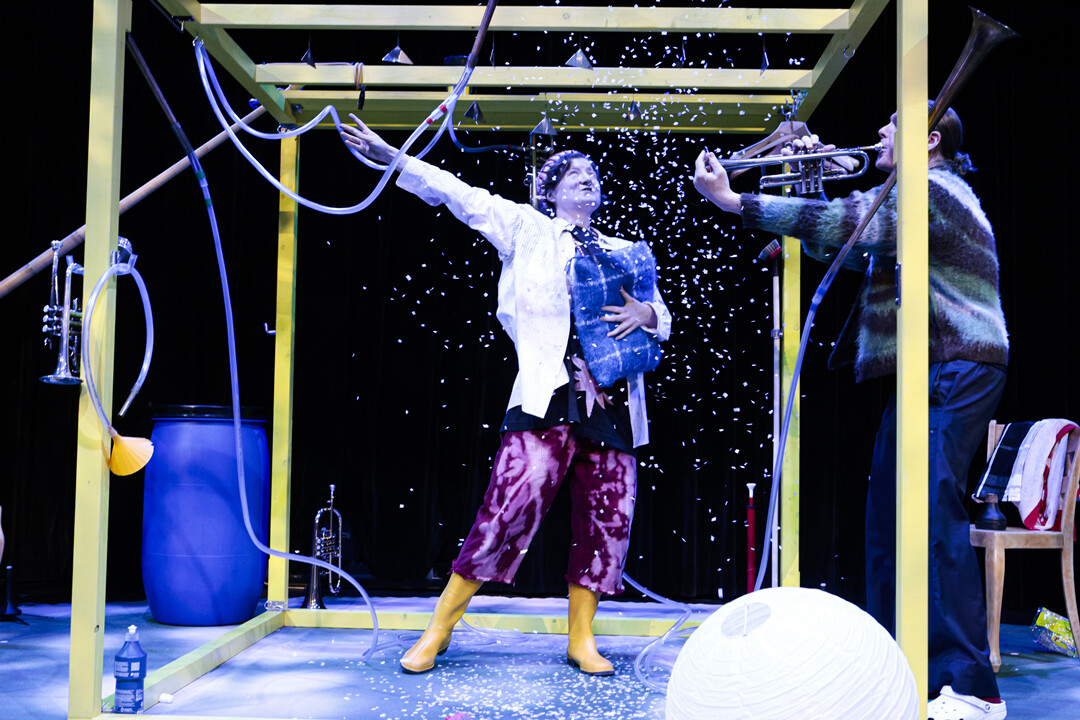 «Sei still! Mach vorwärts! Schlaf ein!» Puh! So viele Befehle von Erwachsenen, und immer genau das, was dem Kind gerade nicht passt. Als sich das Kind etwas wünschen darf, ist klar: «Ab jetzt bestimme ich!». Es folgt ein fantastisches Durcheinander. Manches geht schief, aber nicht nur! Das neue Kinderstück Andersrum! lässt mit wenig Worten und lustiger Musik, von Gesang über Trompete, Alphorn und Gartenschlauch, verrückte Träume wahrwerden.